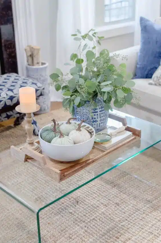 Το φθινόπωρο ήρθε, οπότε μην ξεχάσετε να διακοσμήσετε το σπίτι σας όχι μόνο έξω αλλά και μέσα. Όλοι μας έχουμε ένα τραπεζάκι στο σαλόνι, οπότε μία καλή λύση είναι να το διακοσμήσουμε για το φθινόπωρο. Είτε το στυλ σας είναι ρουστίκ, boho ή μοντέρνο, θα βρείτε πολλά για να κάνετε τους δημιουργικούς σας χυμούς να ρέουν! Είναι πολύ εύκολο να το κάνετε να φαίνεται φθινοπωρινό και άνετο χρησιμοποιώντας κολοκύθες σε βάζα, λουλούδια, ξηρούς καρπούς και άλλα φυσικά πράγματα. Συγκεντρώστε μερικά φύλλα από έξω και χρησιμοποιήστε τα για διακόσμηση – ή απλώς αγοράστε ψεύτικα φύλλα και φτιάξτε τα διακοσμητικά. Προσθέστε γκλίτερ και κεριά και είστε έτοιμες! Θα σας παρουσιάσω 21 εντυπωσιακές φθινοπωρινές ιδέες για να διακοσμήσετε το τραπεζάκι του σαλονιού σας!