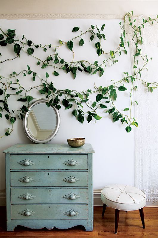 ένας απλός λευκός τοίχος με ένα αναρριχητικό φυτό θα κάνει τον εσωτερικό σας χώρο να δείχνει υπαίθριος