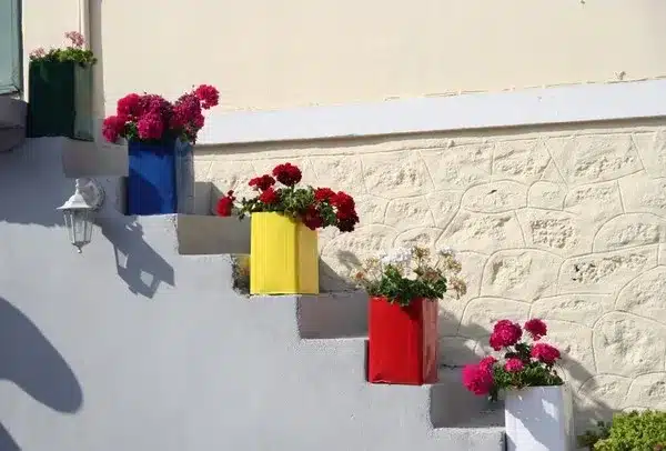 Οι σκάλες είναι ιδανικό μέρος για να διακοσμήσετε με φυτά και λουλούδια σε κάθε είδους γλάστρες και σε μεγέθη ανάλογα με την αντίστοιχη σκάλα. Φροντίστε πάντα τα φυτά να μην εμποδίζουν την πρόσβαση στο σημείο, χρησιμοποιήστε μικρές ή μεγαλύτερες σκάλες που υπάρχουν έξω από το σπίτι για να δημιουργήσετε έναν μικρό… κήπο εκεί.