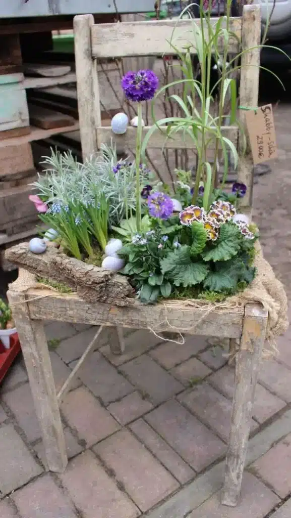 Μία άλλη επιλογή για τα λουλούδια σας είναι τα vintage διακοσμητικά κήπου, στην πραγματικότητα δηλαδή η επαναχρησιμοποίηση παλαιών αντικειμένων ή επίπλων. Όσο πιο δημιουργικοί είστε, τόσο περισσότερο μπορείτε να τους δώσετε ξανά τη ζωή που χρειάζονται. Αν σας αρέσει η παλιά εμφάνιση, θα πρέπει να ξέρετε ότι μπορείτε να αφήσετε τα παλιά πράγματα όπως είναι. Ωστόσο, συνιστάται να βάφετε το ξύλο για να μην σαπίσει και να κρατήσει για περισσότερο χρονικό διάστημα.