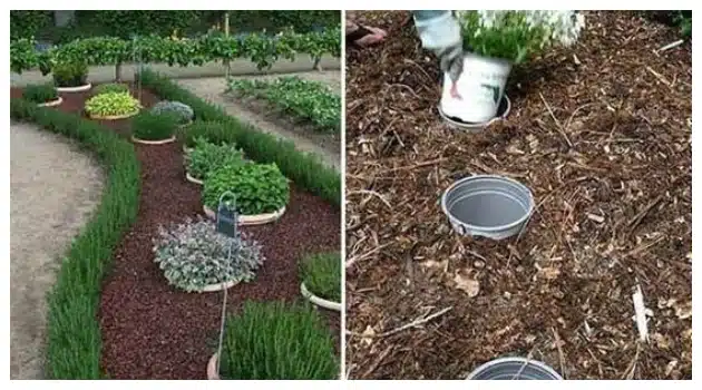 Μπορείτε να βουτήξετε ολόκληρη τη γλάστρα στο χώμα ή να αφήσετε το χείλος της να προεξέχει από το χώμα, αν χρησιμοποιείτε πιο κομψές, χρωματιστές πλαστικές γλάστρες. Από τις τρύπες στο κάτω μέρος της γλάστρας, τις οποίες μπορείτε να κόψετε με κόφτη, θα βγουν οι ρίζες των φυτών και θα βρουν το… χώμα σαν να τα είχατε φυτέψει τα φυτά κατευθείαν στο έδαφος.