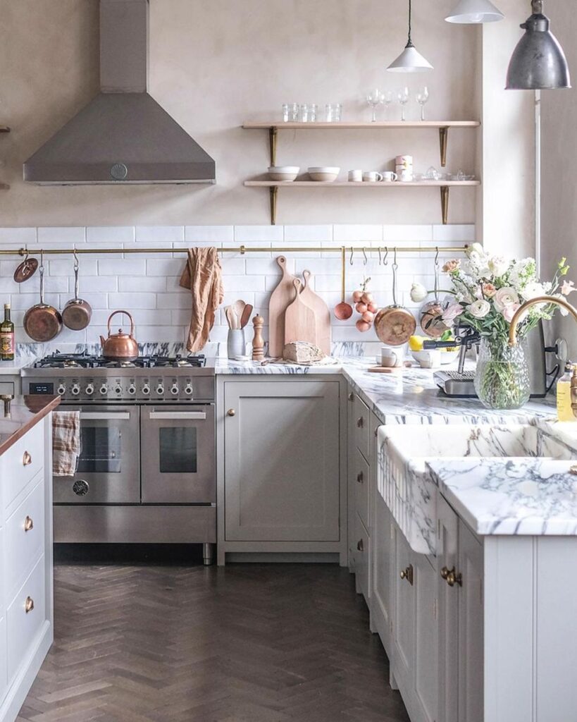 Μία από τις πιο σοφιστικέ αποχρώσεις για τη διακόσμηση της κουζίνας, κατάλληλη για παραδοσιακές κουζίνες, με ματ ντουλάπια και ζεστές ξύλινες επιφάνειες ή πιο μοντέρνα και βιομηχανικά στυλ με καθαρές γραμμές και λείο μεταλλικό. Και σχηματίζει μια λαμπερή βάση για άφθονα χρώματα, από απαλό μπλε έως μπορντό.