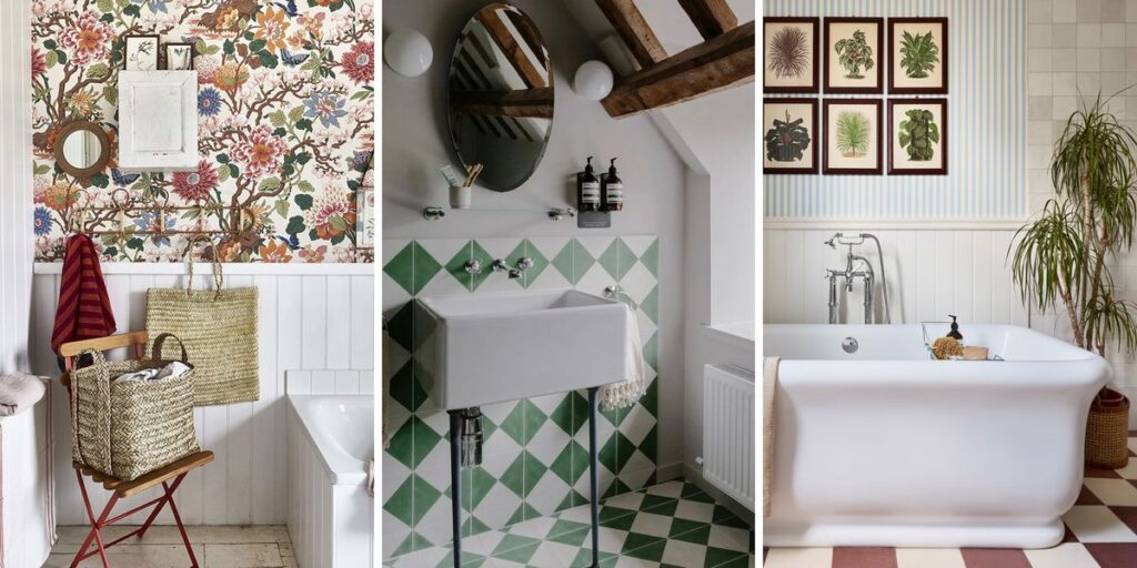 Στο μπάνιο, το δάπεδο από σκακιέρα είναι ίσως ο ευκολότερος τρόπος για να εισάγετε μια τολμηρή vintage σχεδίαση, μαζί με πιο παραδοσιακή μεταλλοτεχνία από ορείχαλκο, ξύλινη επένδυση τοίχου και ακόμη και ταπετσαρία.