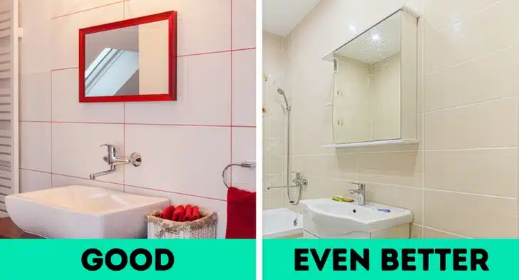 Τα ντουλάπια με καθρέφτες είναι ιδιαίτερα σημαντικά για μικρά μπάνια όπου κάθε εκατοστό χώρου έχει σημασία. Οι καθρέφτες που έχουν ράφια στα πλάγια μπορούν να είναι μια τέλεια επιλογή για την αποθήκευση καλλυντικών που πρέπει να φυλάσσονται σε σκοτεινό μέρος που χρησιμοποιούμε μπροστά στον καθρέφτη.