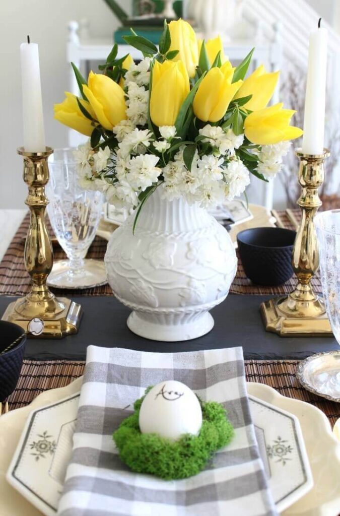 Το καλό με τη διακόσμηση του τραπεζιού για τις διακοπές του Πάσχα είναι ότι δεν υπάρχουν πολλοί περιορισμοί. Θέλετε κάτι πιο παραδοσιακό; Λοιπόν, μπορείτε να δημιουργήσετε μερικά όμορφα κεντρικά κομμάτια με λουλούδια που ταιριάζουν στην Άνοιξη. Αυτός είναι ίσως ο ευκολότερος τρόπος για να προσθέσετε λίγο χρώμα και στο στήσιμο σας, δίνοντας στο τραπέζι σας ζωντάνια που θα εκτιμήσουν όλοι οι καλεσμένοι σας. Ή μήπως μια πιο φυσική προσέγγιση στο κεντρικό κομμάτι είναι πιο ψηλά; Μπορείτε να προσθέσετε περισσότερα φυσικά διακοσμητικά αντικείμενα με πράσινο και καφέ χρώμα, δίνοντας στο σχέδιο μια γήινη εμφάνιση.