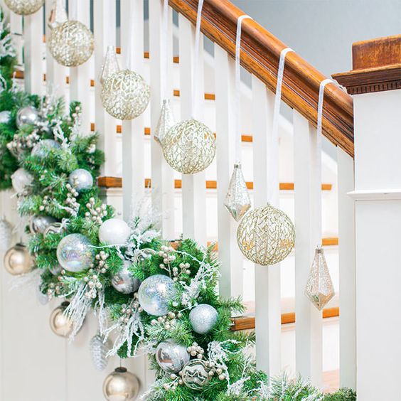 Διακοσμήστε τις σκάλες και το κάγκελό σας με όμορφα χριστουγεννιάτικα στολίδια, καμπάνες, φωτάκια, γιρλάντες από έλατα, πανό και μονογράμματα – όλα όσα θεωρείτε όμορφα για μια τέτοια διακόσμηση. Με αυτόν τον τρόπο θα δώσετε στην είσοδο σας μια εορταστική αίσθηση και όλοι οι επισκέπτες σας θα νιώσουν τα Χριστούγεννα αμέσως.
