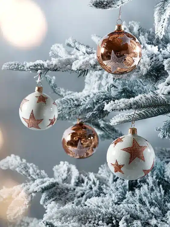 στολίδια από χαλκό και ροζ χρυσό για τη διακόσμηση χριστουγεννιάτικου δέντρου