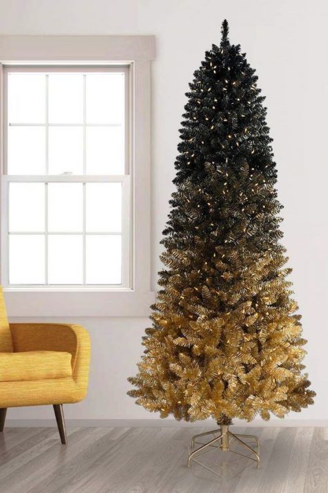 ένα τολμηρό ντεγκραντέ μαύρο σε χρυσό προφωτισμένο χριστουγεννιάτικο δέντρο