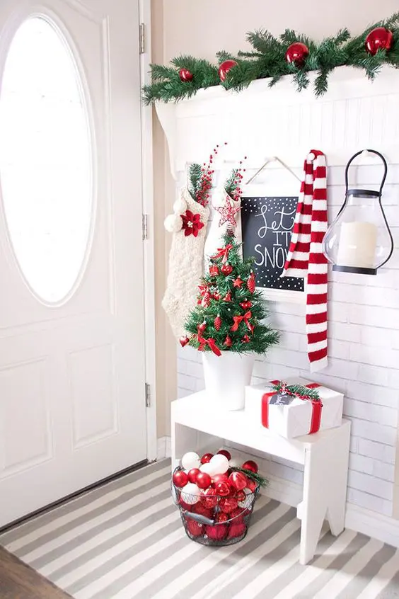 Το κόκκινο είναι, φυσικά, βασικός πυλώνας για τη χριστουγεννιάτικη διακόσμηση. Μαζί με το πράσινο και το λευκό, τα τρία αυτά χρώματα συνθέτουν τα παραδοσιακά χρώματα που συνδέονται με τα Χριστούγεννα. Το κόκκινο είναι αγαπημένο γιατί απλώς είναι έντονο, καθιστώντας το μια καλή επιλογή για ένα χρώμα έμφασης κατά την περίοδο των γιορτών.