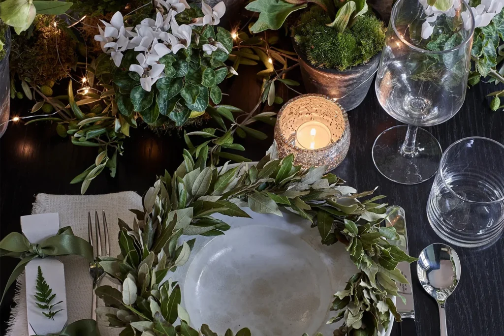 Στεφάνια από ευκάλυπτο, πεύκο ή λεβάντα χωρίς πολλά στολίδια.