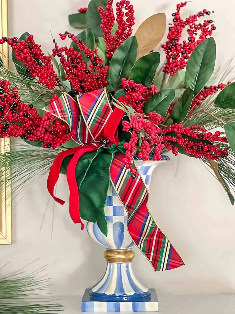 - πρόσθεσε μια χριστουγεννιάτικη κορδέλα σε ένα απλό βάζο