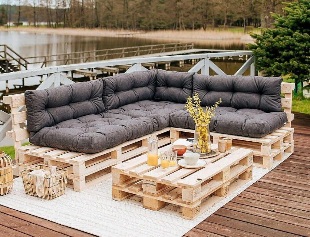 Στοιβάξτε παλέτες, προσθέστε μαξιλάρια και υφάσματα. Ιδανικό για βεράντες και κήπους.