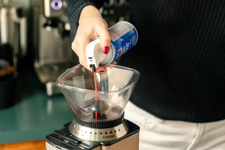 Μισώ τη βρωμιά που μαζεύεται μέσα στο γυάλινο μύλο του καφέ μου. Ο συμπιεσμένος αέρας είναι εξαιρετικός για να φυσάει σκόνη από το μύλο όταν αλλάζετε ποικιλίες καφέ.