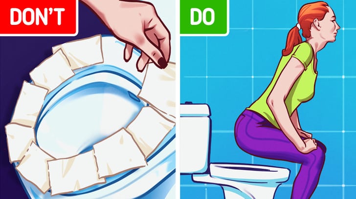 Το χαρτί υγείας δεν βοηθά στην καταπολέμηση των μικροβίων που υπάρχουν στην τουαλέτα. Απορροφά την υγρασία, γεγονός που το καθιστά καλό μέρος για την αναπαραγωγή μικροβίων. Το ανθρώπινο δέρμα, από την άλλη, μπορεί να καταπολεμήσει τα μικρόβια καλύτερα από το χαρτί υγείας. Απλώς βεβαιωθείτε ότι το κάθισμα είναι στεγνό και δεν έχετε ανοιχτές πληγές στους γοφούς και τους γλουτούς σας. Εάν εξακολουθείτε να μην είστε σίγουρες, απολυμάνετε πρώτα το κάθισμα ή κάντε τη δουλειά σας ενώ βρίσκεστε σε στάση οκλαδόν.