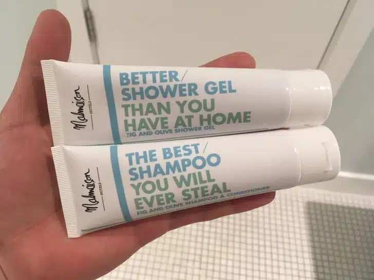 Αντικείμενα όπως μίνι μπουκάλια σαμπουάν, κοντίσιονερ, αφρόλουτρο και μικροσκοπικά σαπούνια χεριών είναι κλασικά και πρώτα στη λίστα των πραγμάτων που σκεφτόμαστε να πάρουμε από ένα ξενοδοχείο ως αναμνηστικά. Δεν είναι λοιπόν κακό να τα πάρεις μαζί σου! Το μικρό τους μέγεθος είναι ιδανικό για ταξιδιώτες και μπορούν να μεταφερθούν χωρίς περιορισμούς στις χειραποσκευές σας κατά τη διάρκεια της πτήσης σας για το σπίτι. Σε αυτό το κιτ μπορούν επίσης να προστεθούν αποσμητικά και ναι, μπορούν να ληφθούν και αυτά δωρεάν.