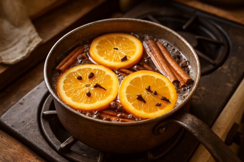 Βάλτε φέτες πορτοκαλιού και ξυλάκια κανέλας στον φούρνο ή στην κατσαρόλα σε χαμηλή θερμοκρασία για να γεμίσει ο χώρος άρωμα.